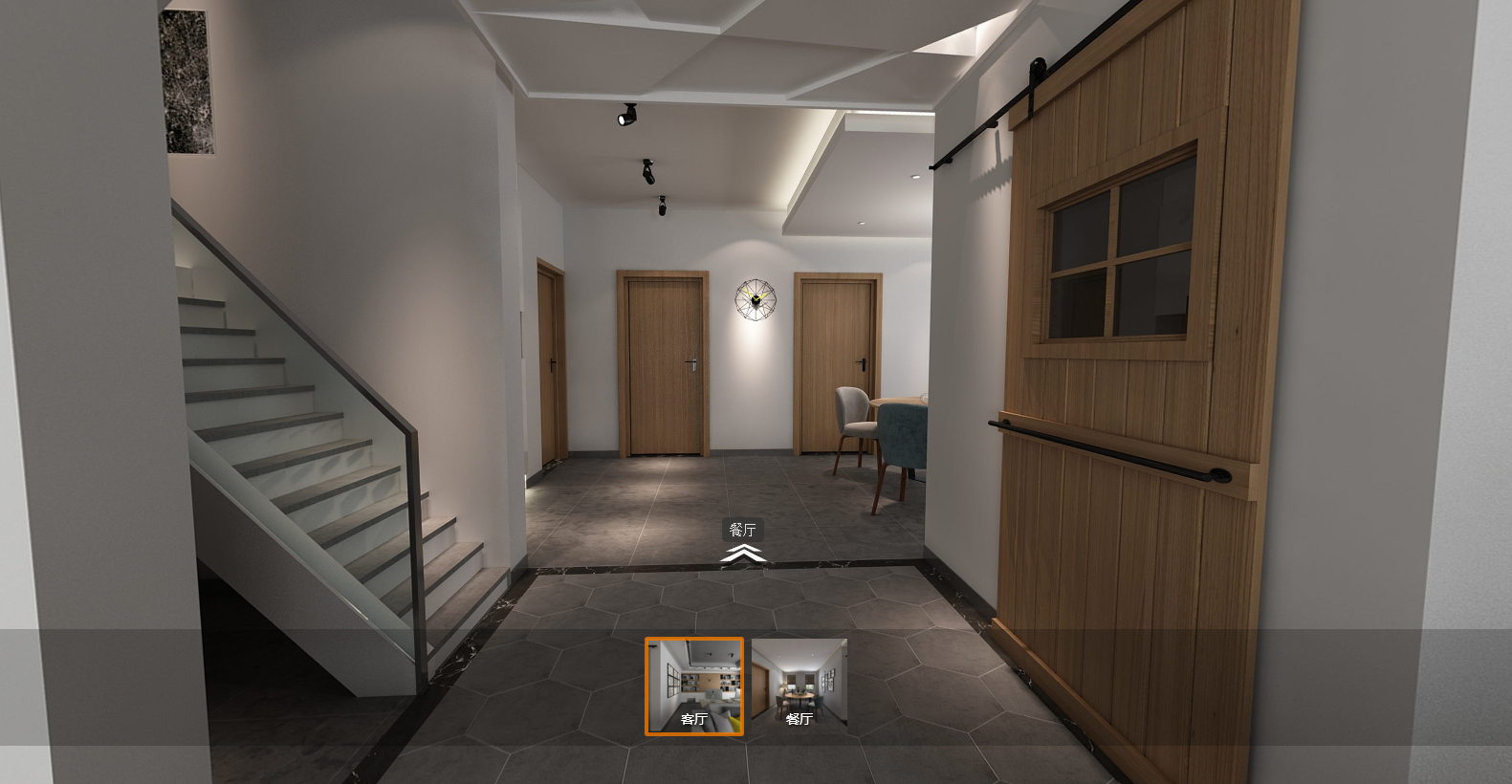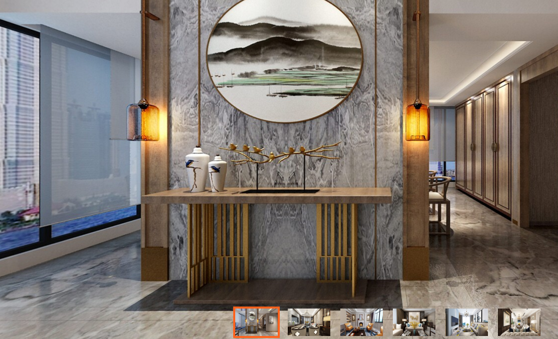 4、观看数字化实景漫游时,客户可以通过鼠标放大缩小,任意观看房子的各个角度,还可以结合场景热点、大环境地图、交互的指南针、文字描述、声音等,真正做到多媒体交互的虚拟现实三维漫游。